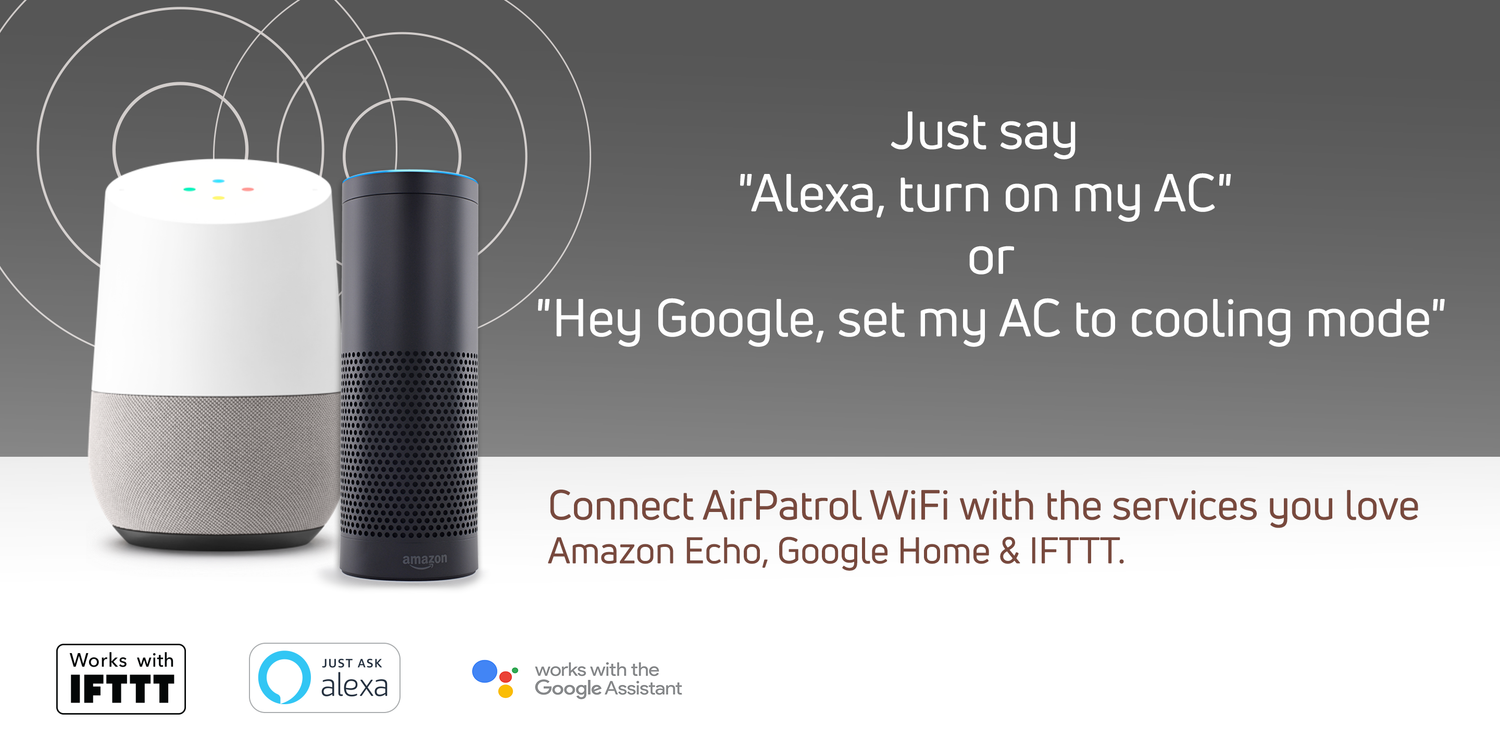 AirPatrol toimii myös Alexan tai Google Homen avulla, joten voit ohjata laitetta äänikomennoilla. Enää ei tarvitse nousta tuolista tai edes painaa painiketta. Toimii myös IFTTT:llä